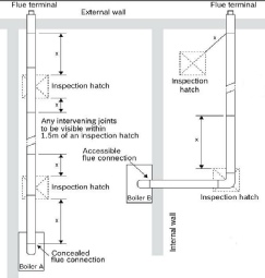 If you have a boiler where all, or part of the flue cannot be seen, homeowners and landlords will need to arrange for inspection hatches to be fitted to enable the complete length of the flue to be visually inspected.